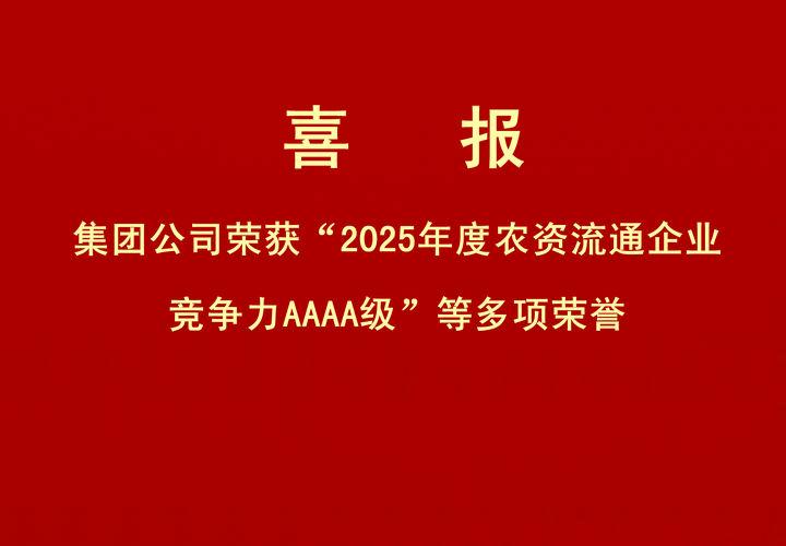 喜報|集團(tuán)公司榮獲“2025年度農(nóng)資流通企業(yè)競爭力AAAA級”等多項(xiàng)榮譽(yù)